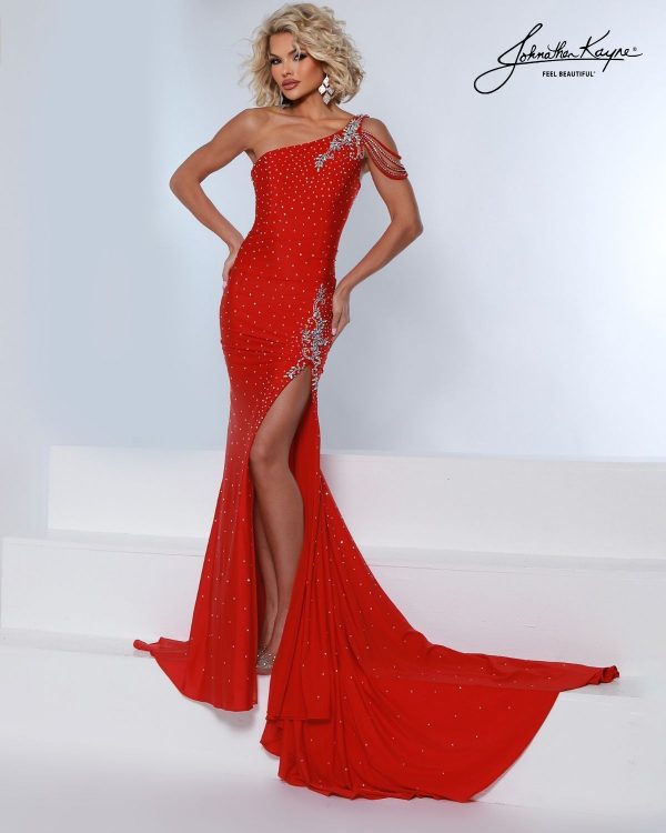 Round of applause for this striking one-shoulder gown! Boasting a beaded leg slit that commands attention, this dress is guaranteed to make a statement at any occasion. The intricate detailing on the back adds a touch of sophistication.