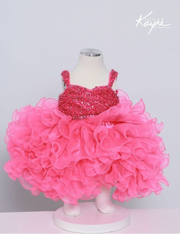 Have your little one bring on all the charm in this stunning ruffle organza toddler dress. The pearl accented bodice creates sparkle and corset back is the perfect addition as the little one grows!