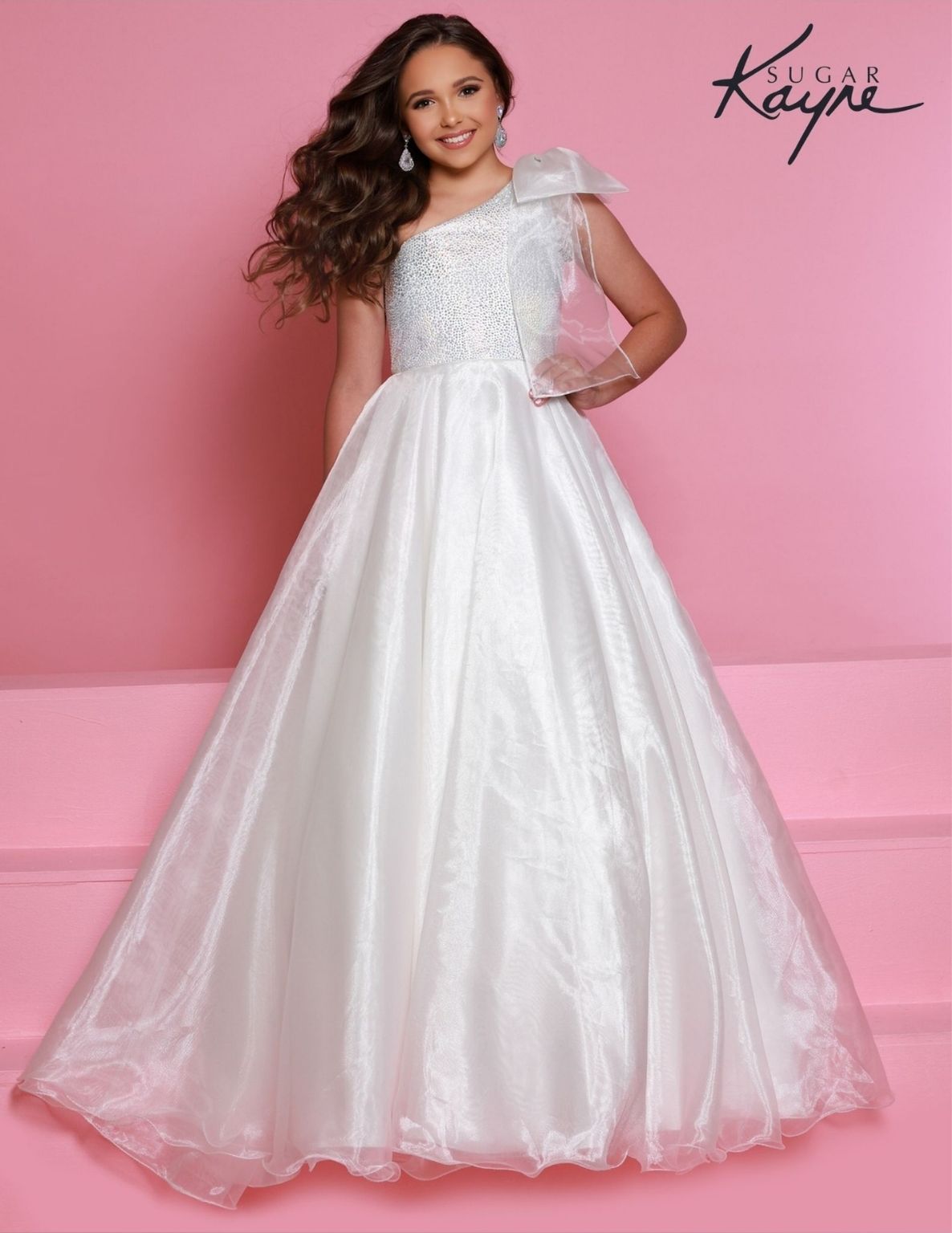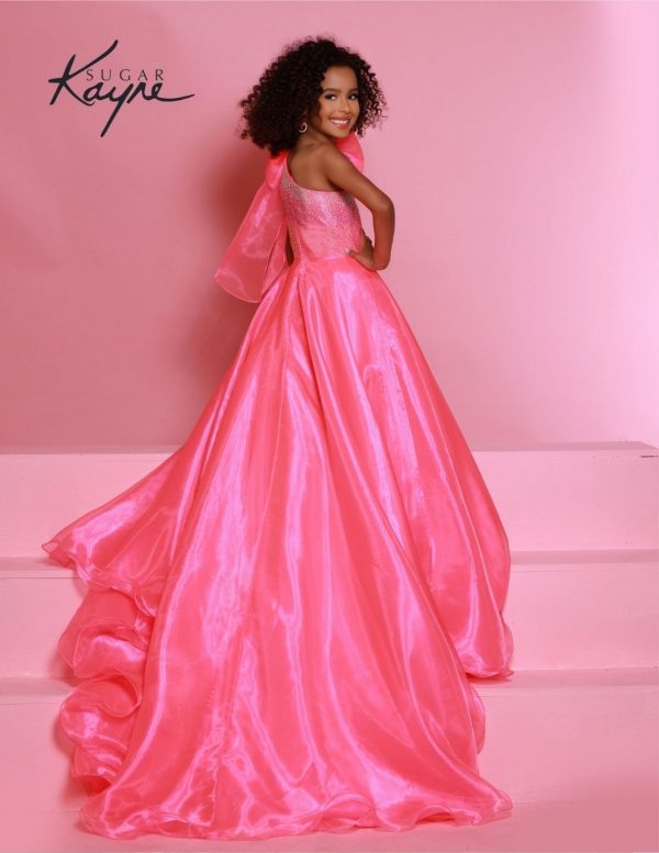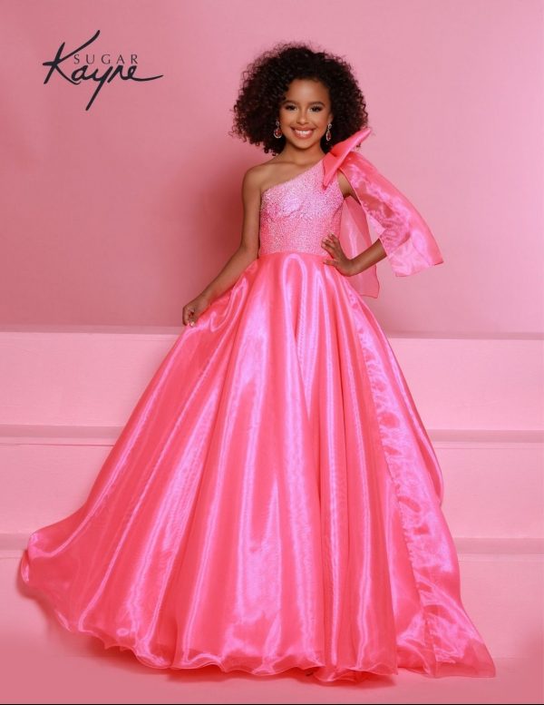 | Product Details | Go ahead and take a BOW in this lovely one-shoulder organza ballgown. The ombre beaded bodice brings all the dazzle! |
